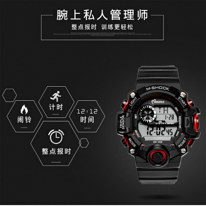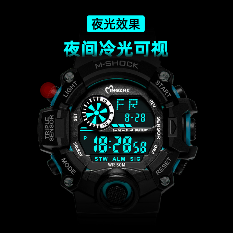 Watch male electronic watch junior high school student boy children trend youth waterproof luminous sports men's electronic watch