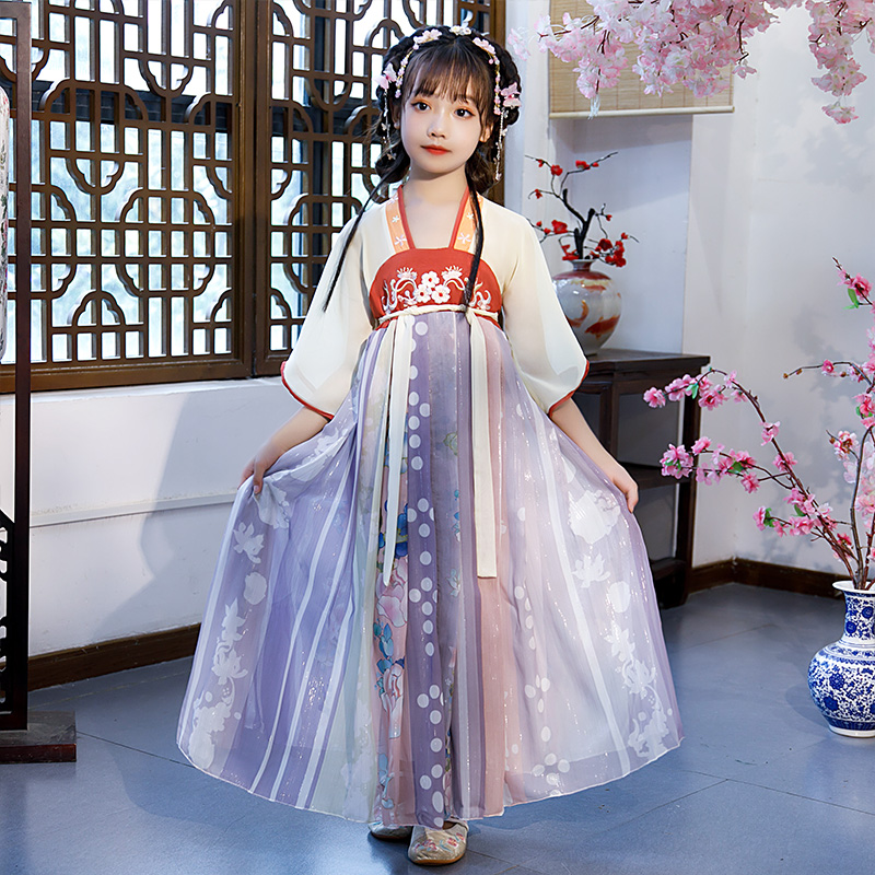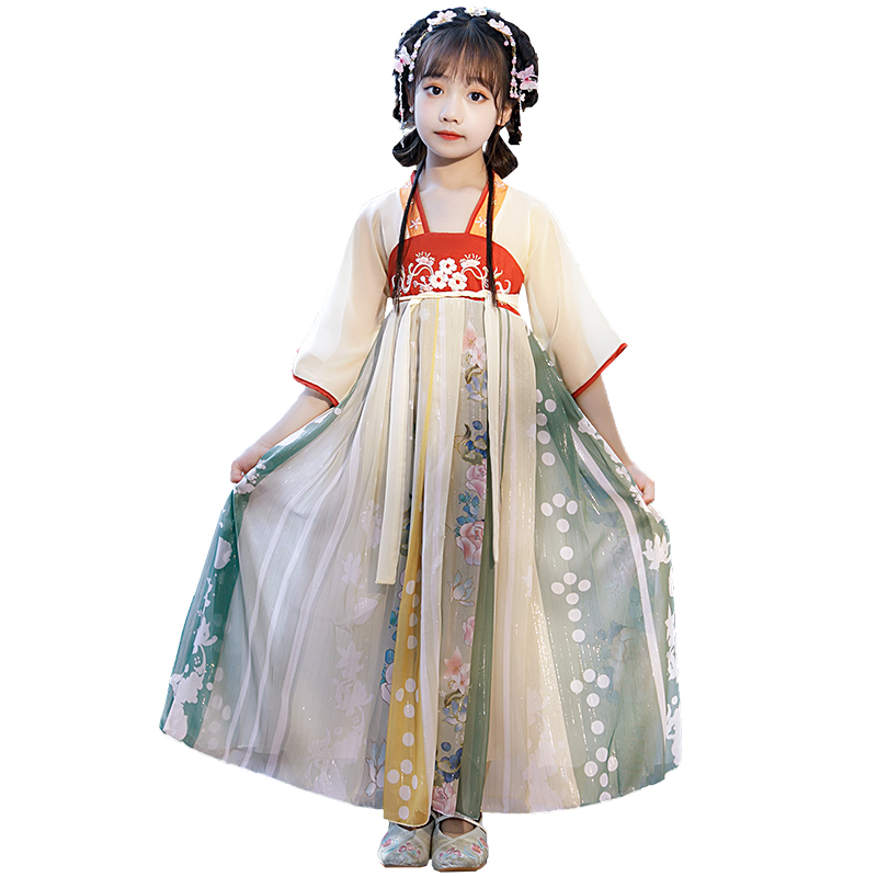 Girls Hanfu Summer Dress Children's Ancient Costume 2021 New Summer Girl Dress Super Fairy Ruskirt Chinese Style Tang Suit