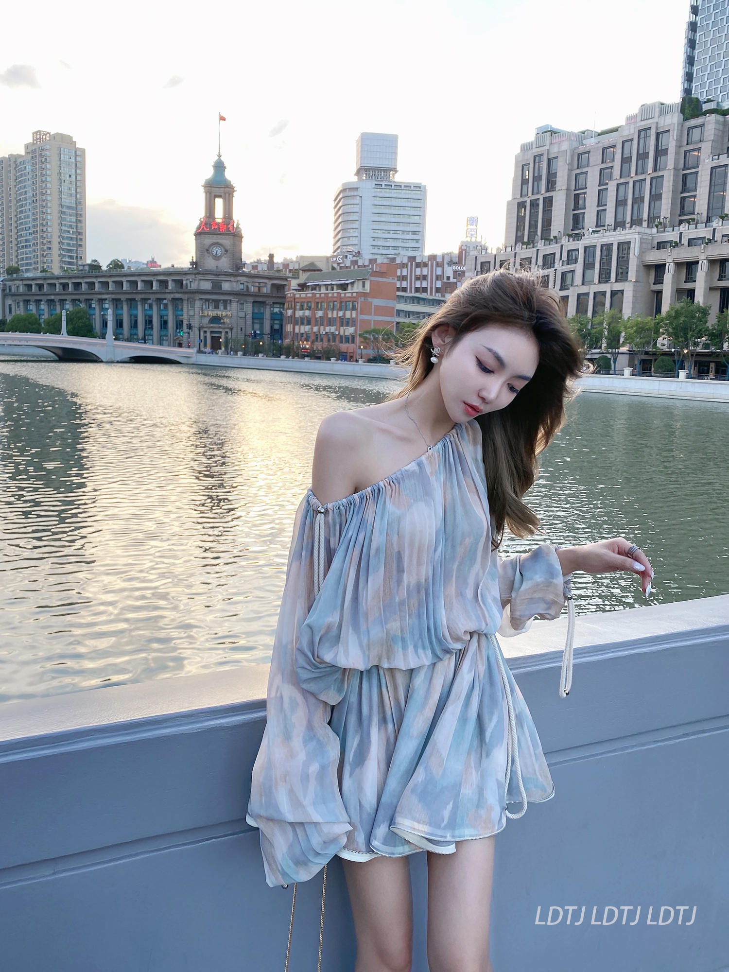 LDTJ Gao Ding 22 Xia Xin Yi Mengling sexy waist was thin and covered the flesh off the shoulders Sanya seaside holiday dress female