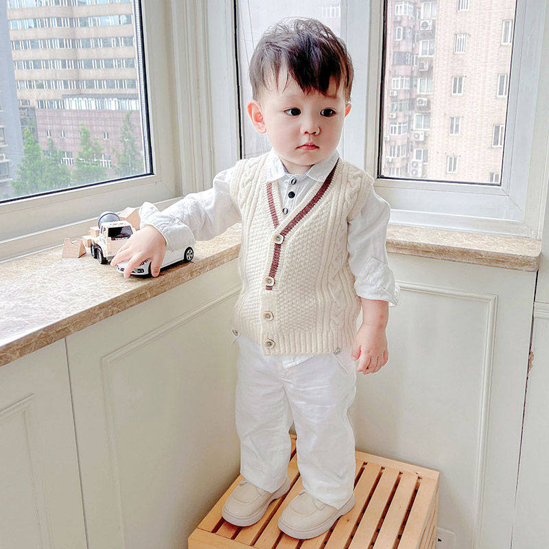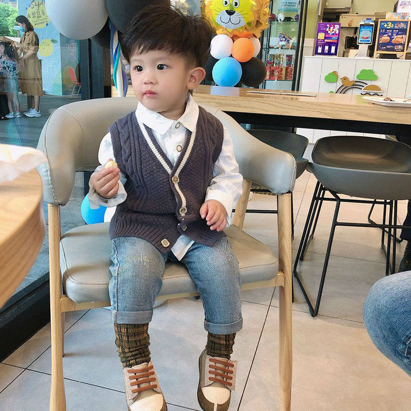 Fashionable and handsome boy vest outside wearing foreign style baby boy sweater cardigan spring and autumn thin section baby knitted vest