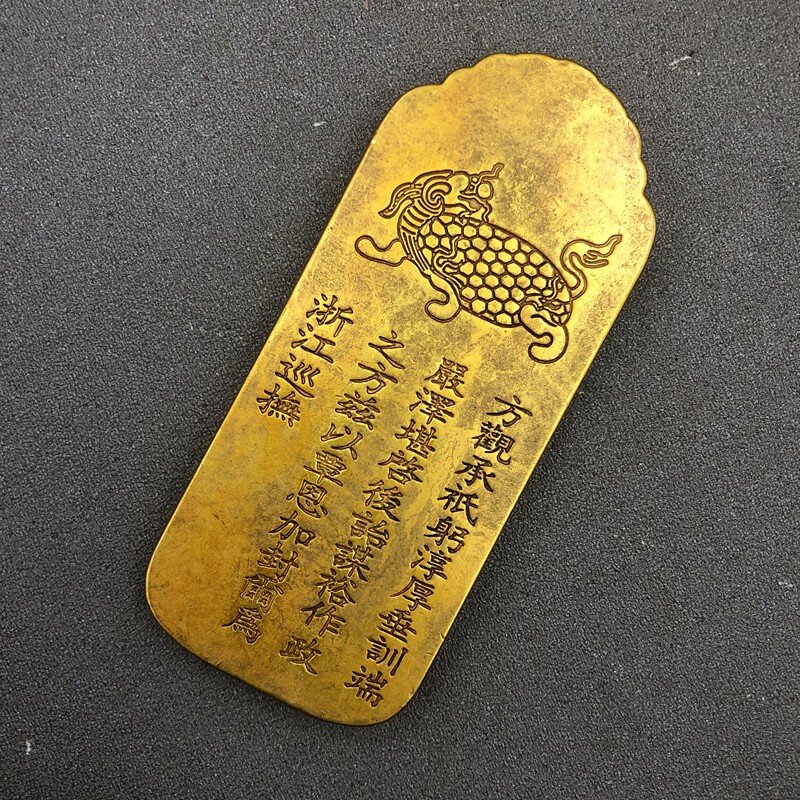 Antique Zhejiang Governor Token Soldier Talisman Tiger Talisman Bronze Medal Ornament Great Qing Zhejiang Governor Order Film and Television Props