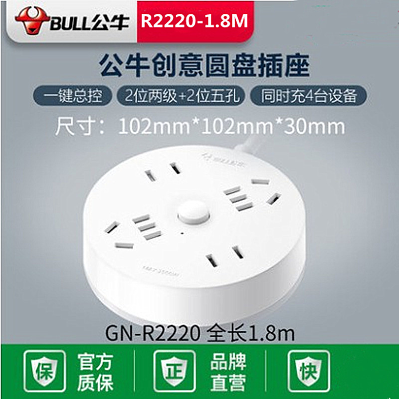 Bulls plug-in socket panel multi-function round USB row plug-in dormitory with plug-in socket panel extension cord