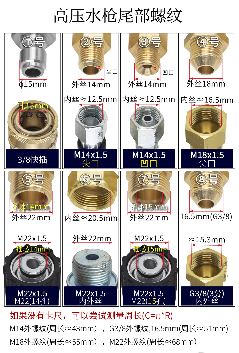 (No. 2) inner and outer wire M14x1 5 (point) (3) inner and outer wire M14x1 5 (notch) (4) inner and outer wire M18x1 5 (6) inner and outer wire