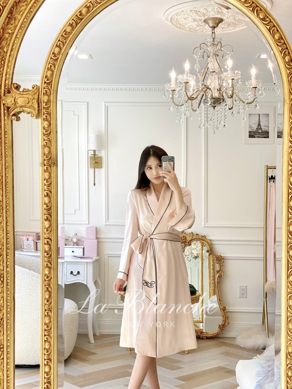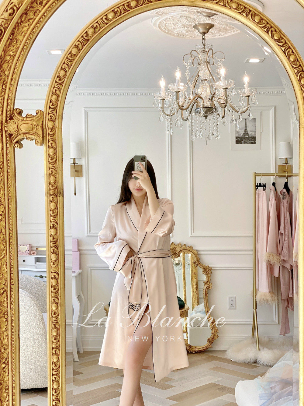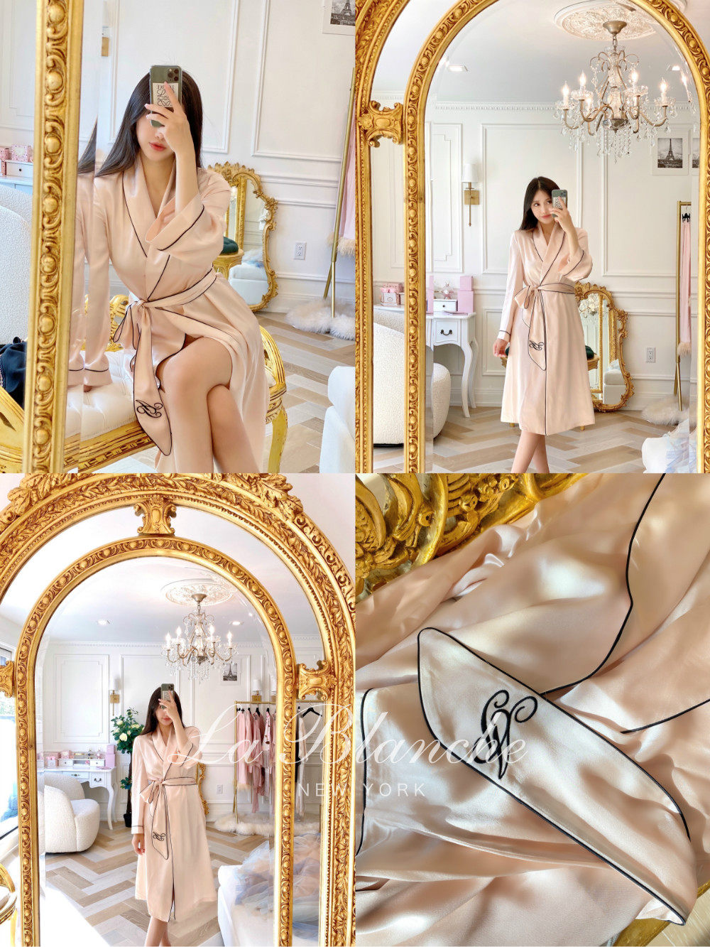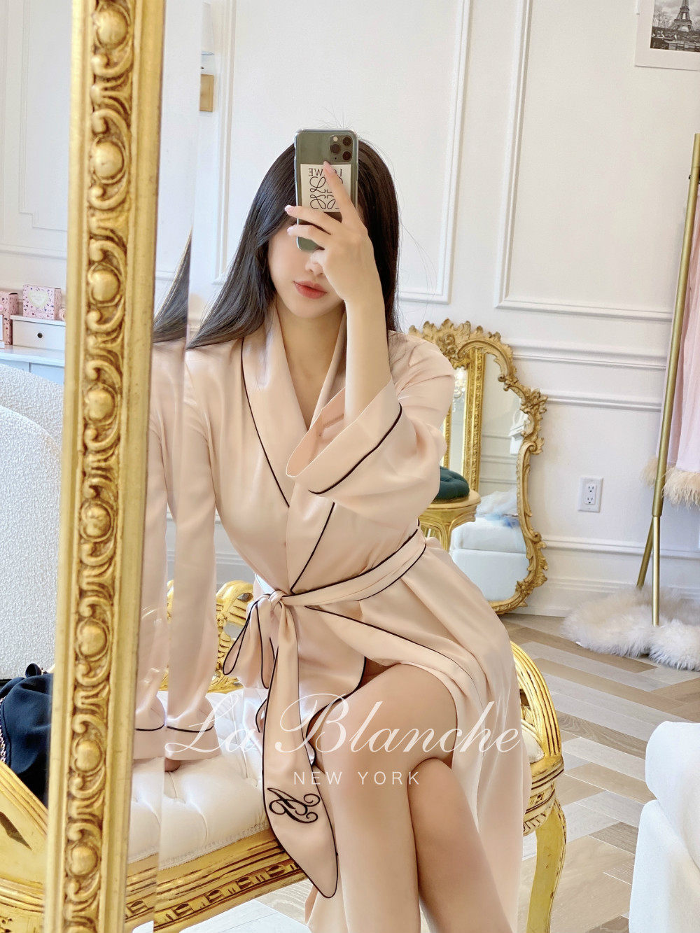 Paris Xiaogui woman weighs in Du family A* P nude pink real silk pyjamas sleeping robes sexy medium long spring and autumn home clothes-Taobao