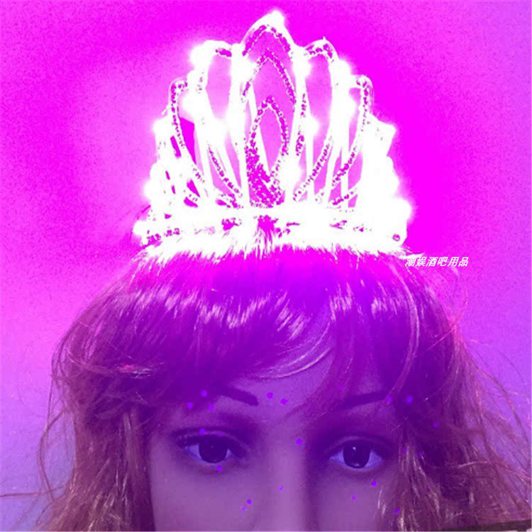 Bar KTV Birthday Party Performance Diamond Crystal LED Charging Seven Colorful Luminous Crown Hair Stirrup Hairpin Hair