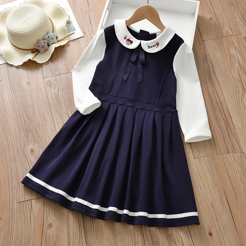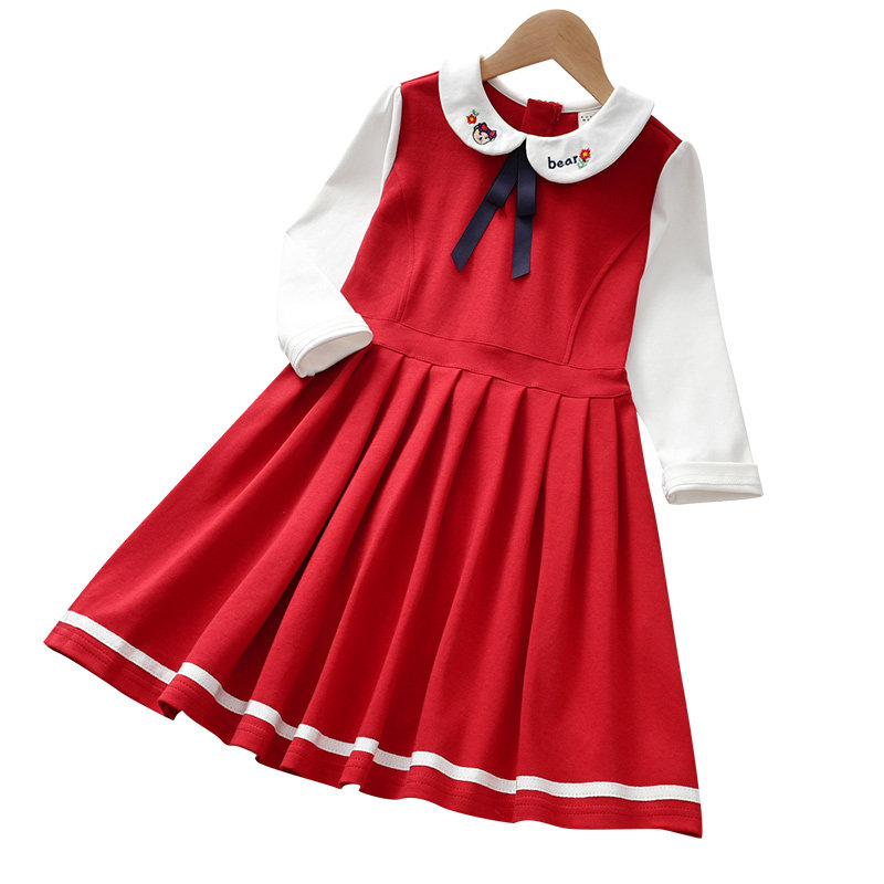 Girls College Wind Dress 2022 New Children Women Red Middle Children Girl Foreign Spring Autumn Princess Dresses