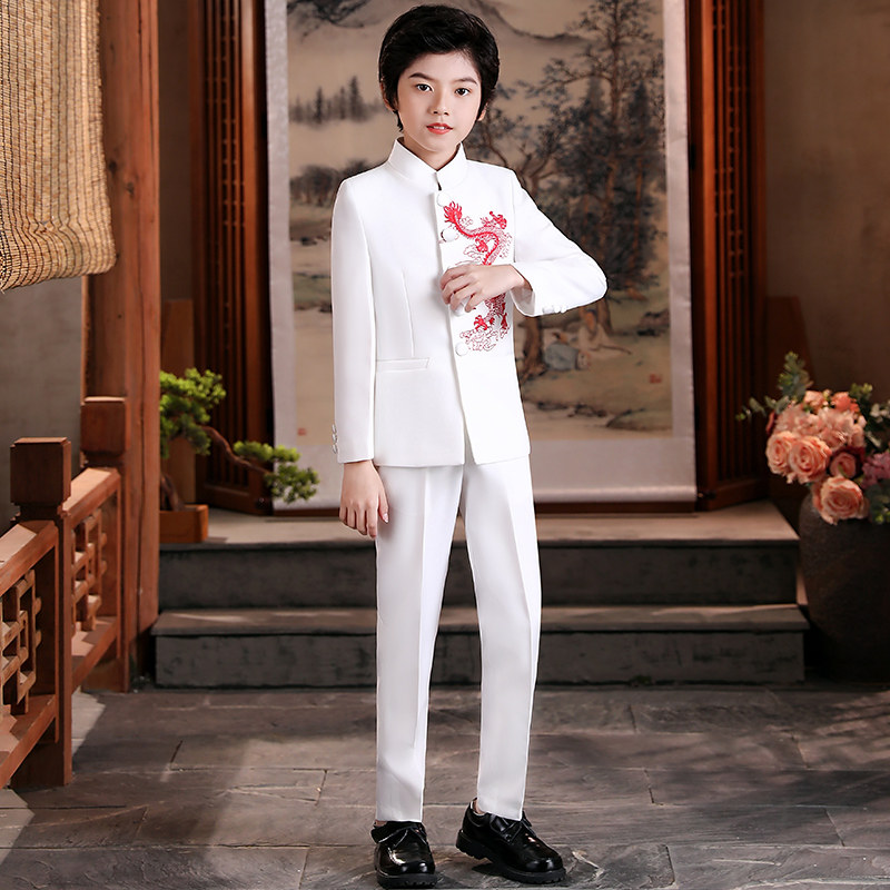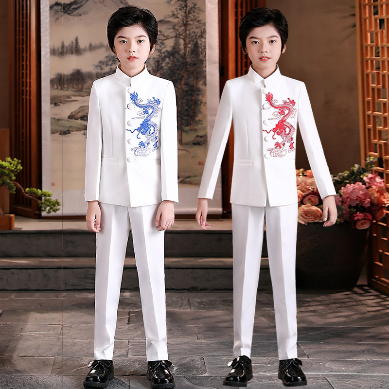 Red Dragon and white two-piece suit pants Red Dragon white three-piece suit pants shirt blue dragon white two-piece suit pants Blue Dragon white three-piece suit suit pants shirt