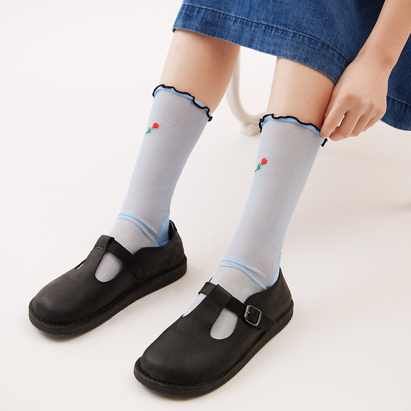 Shang Sen COLORED glass crystal stockings blue socks women's summer spring and autumn thin section tube socks stockings stockings shoes
