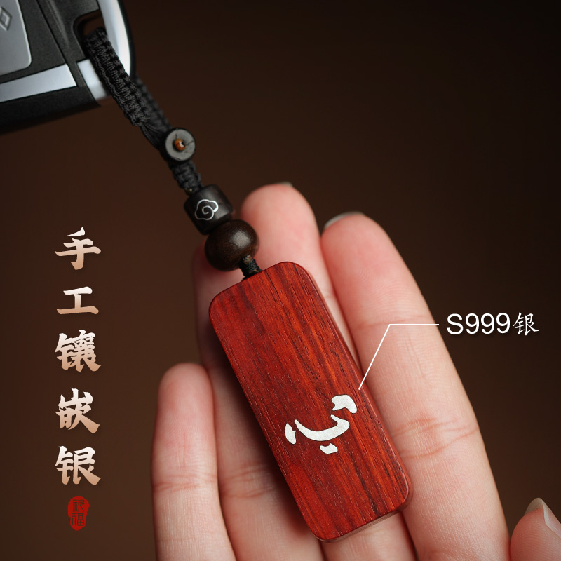 Car key chain pendant on red sandalwood signed on the men's and women's high-end bags wooden safety card pendant pendant
