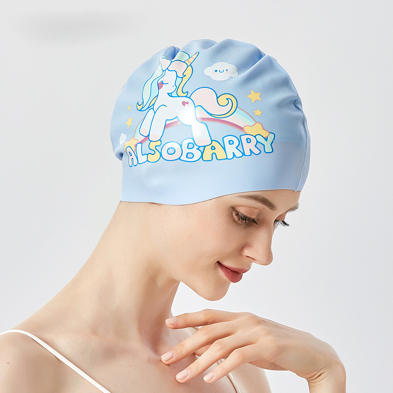 Swimming cap ladies waterproof non-straight head cute Korean long hair can be used high elastic face small cartoon adult swimming cap