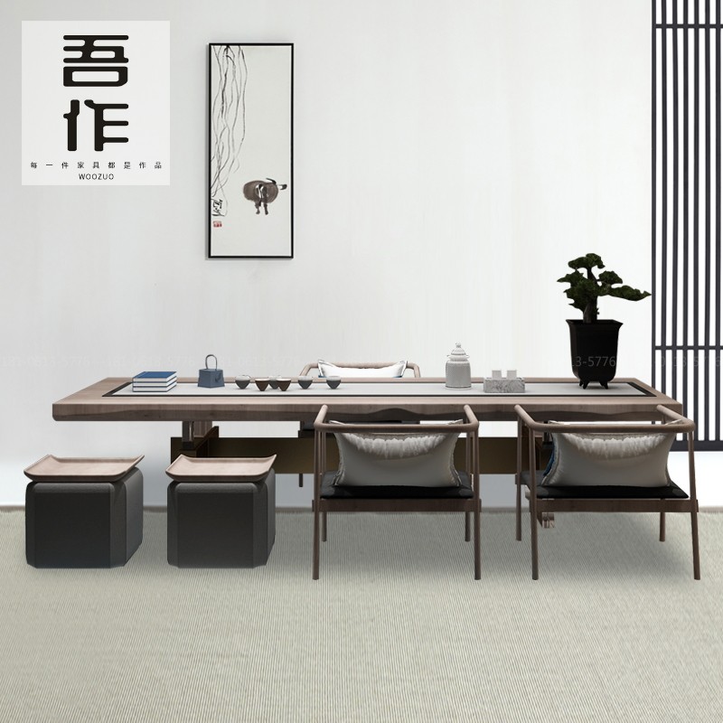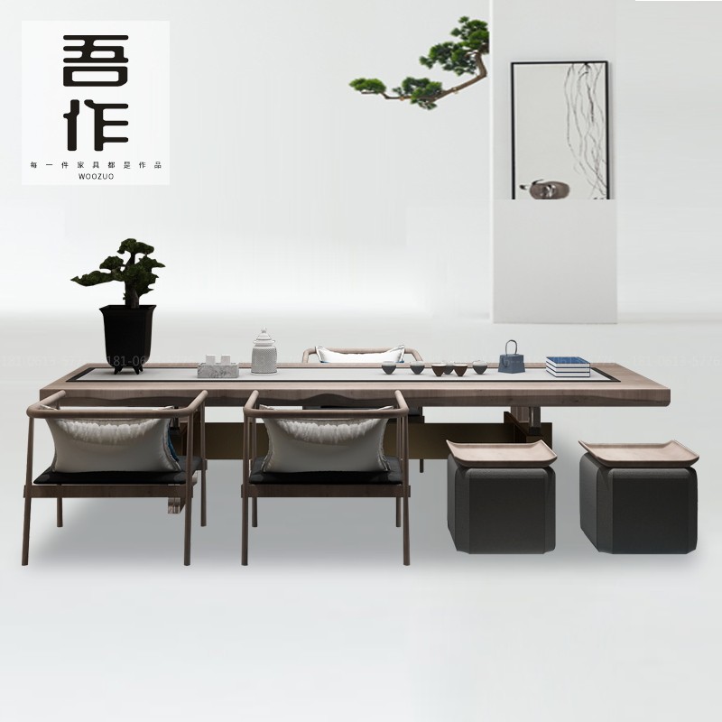 Designer high-end tea table and chairs Hotel club villa tea room reception guests Kung Fu tea table engineering furniture customization