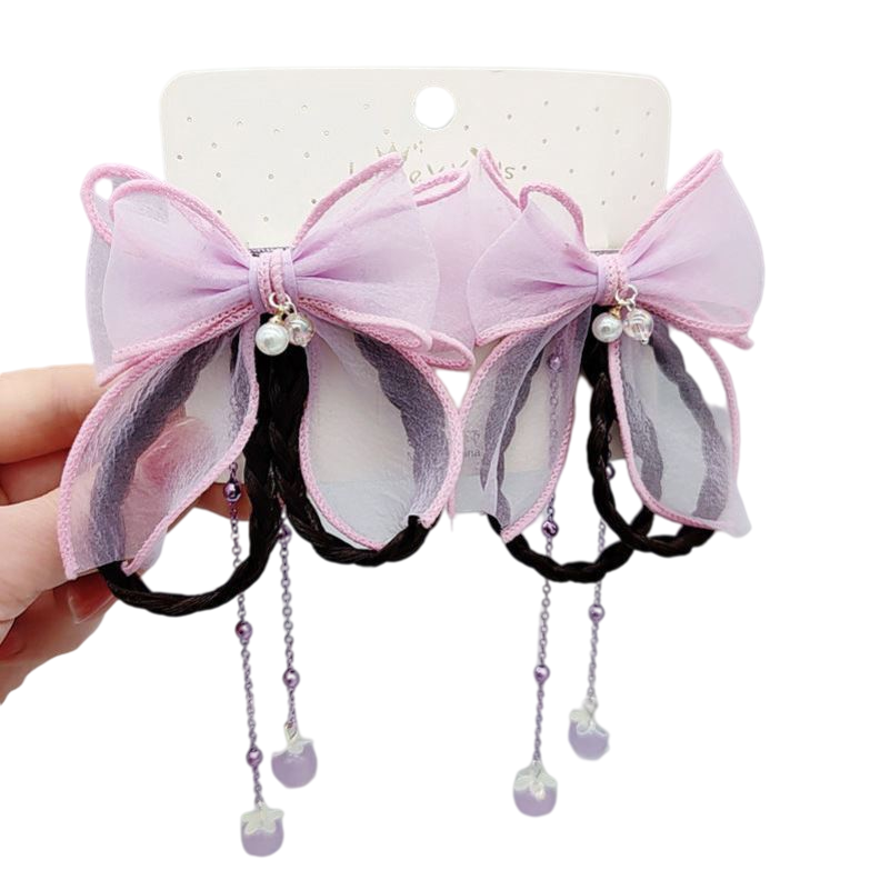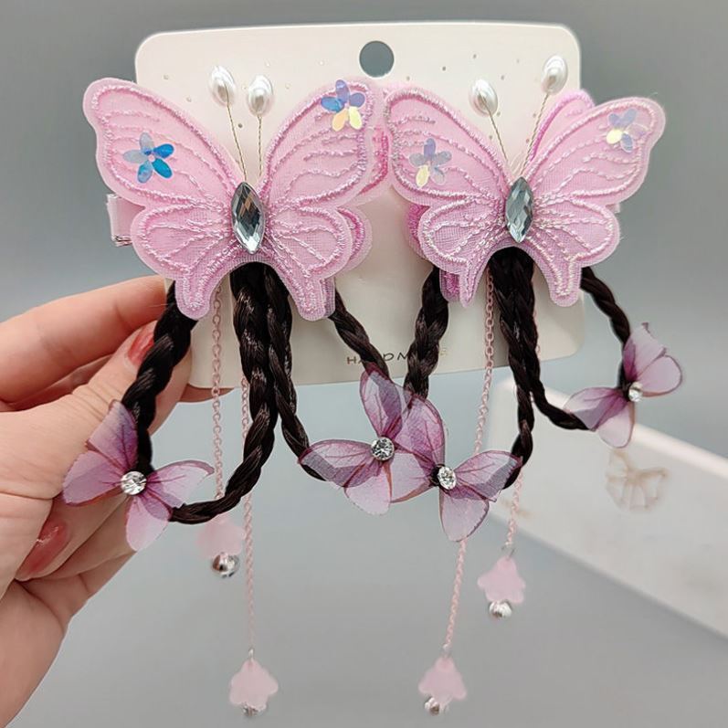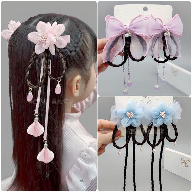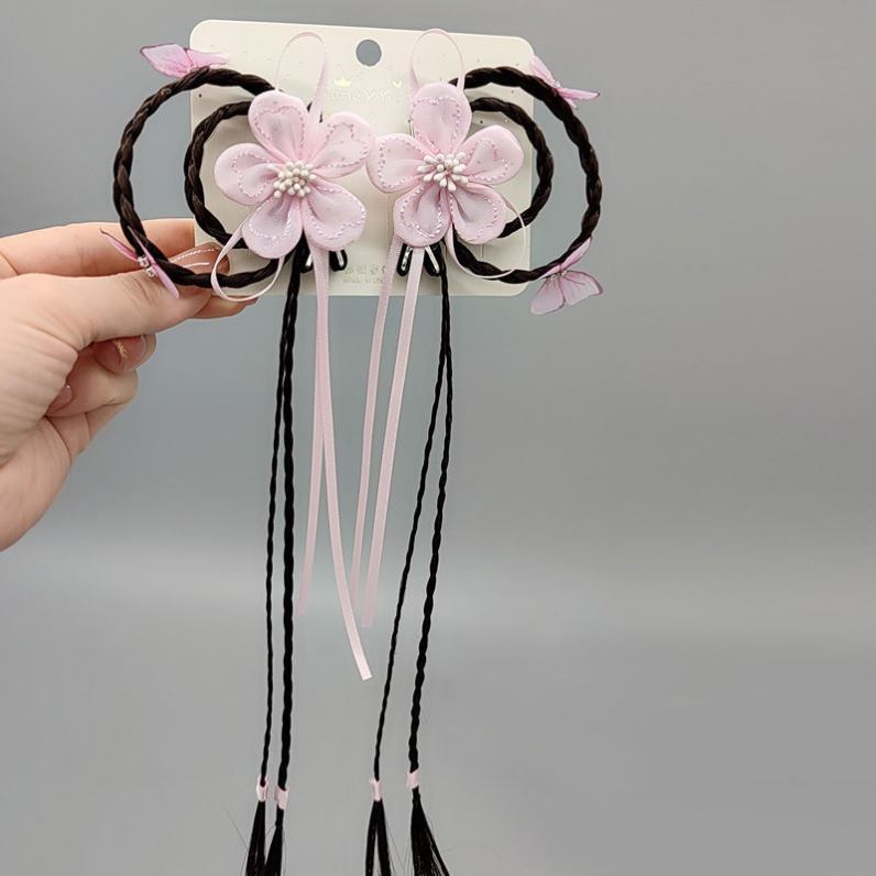 Girls Hanfu headdress Chinese style ancient costume super fairy Xiabao hairpin cute fake braid pair with handmade bow