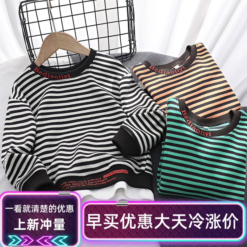 2022 autumn striped children's clothing casual tops children's tops bottoming shirt boys long-sleeved T-shirt girls pullover T-shirt - Taobao