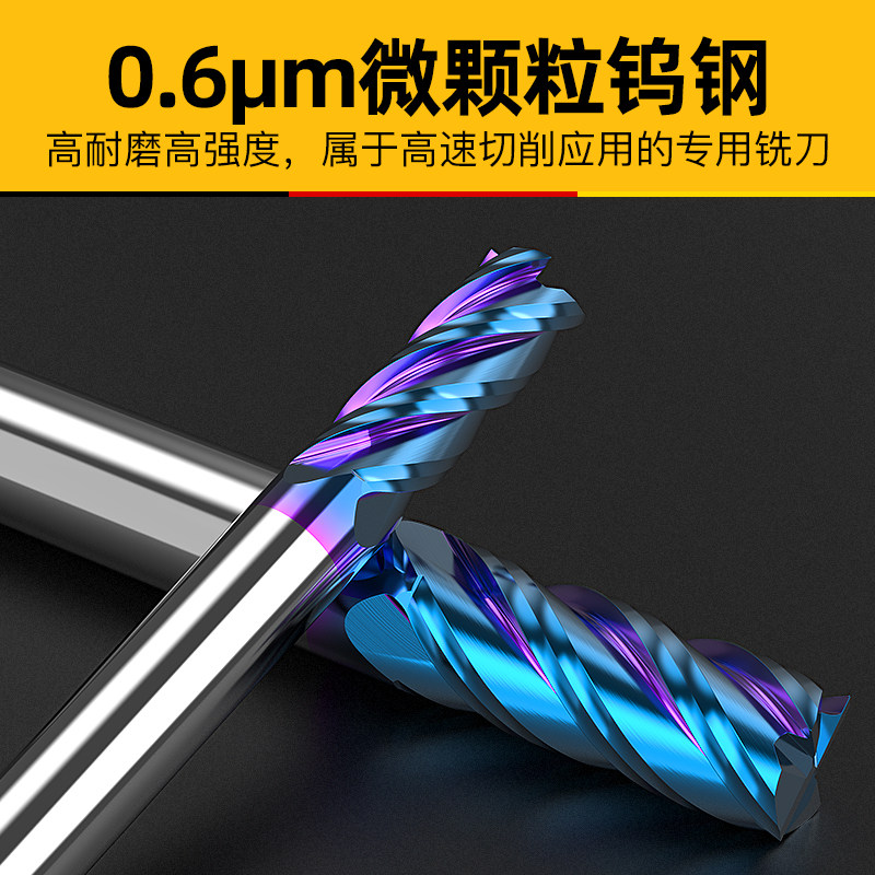 65-degree tungsten steel milling cutter 4-edge alloy coated upright milling cutter Divine Instrumental Stainless special lengthened flat-bottomed numerical control cutter