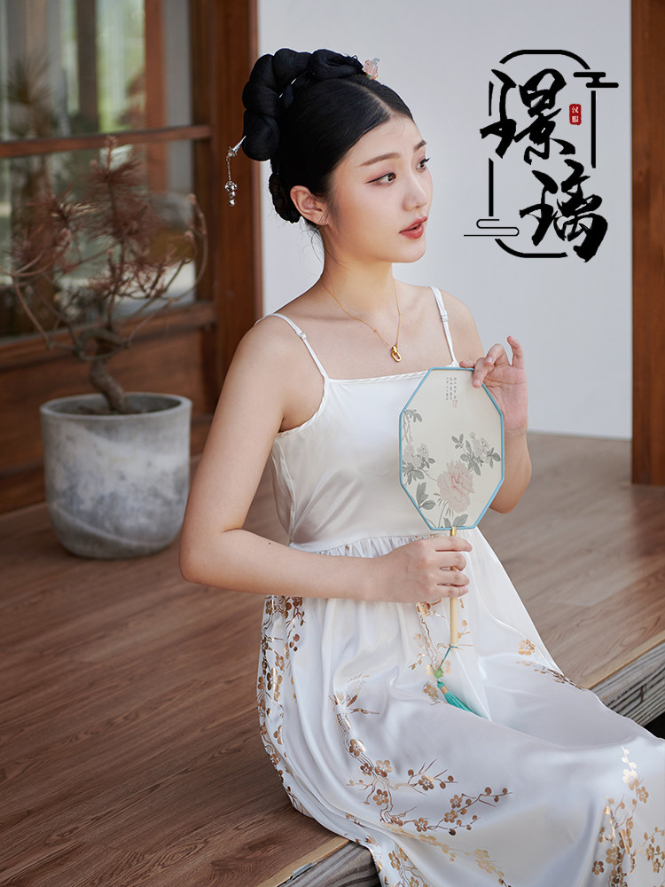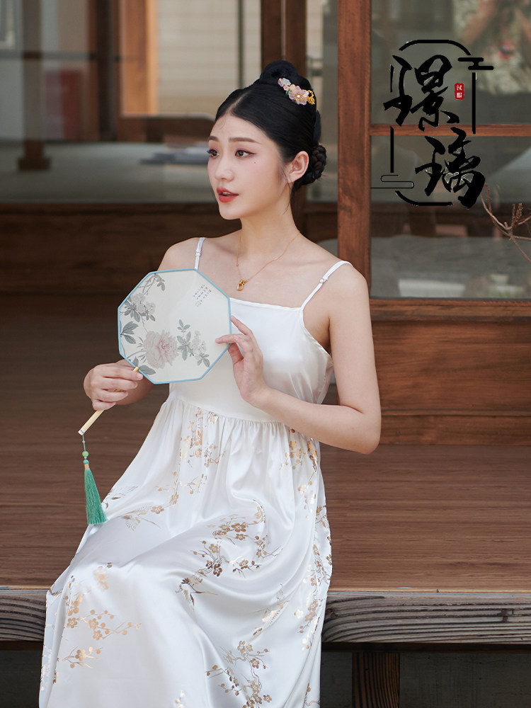 Glazed Original Country Wind Scalding Gold Improved Hanfu Sleeping Skirt Smear Thin model Emulated Silk Palace Wind Sleeping Clothes Spring Summer Women