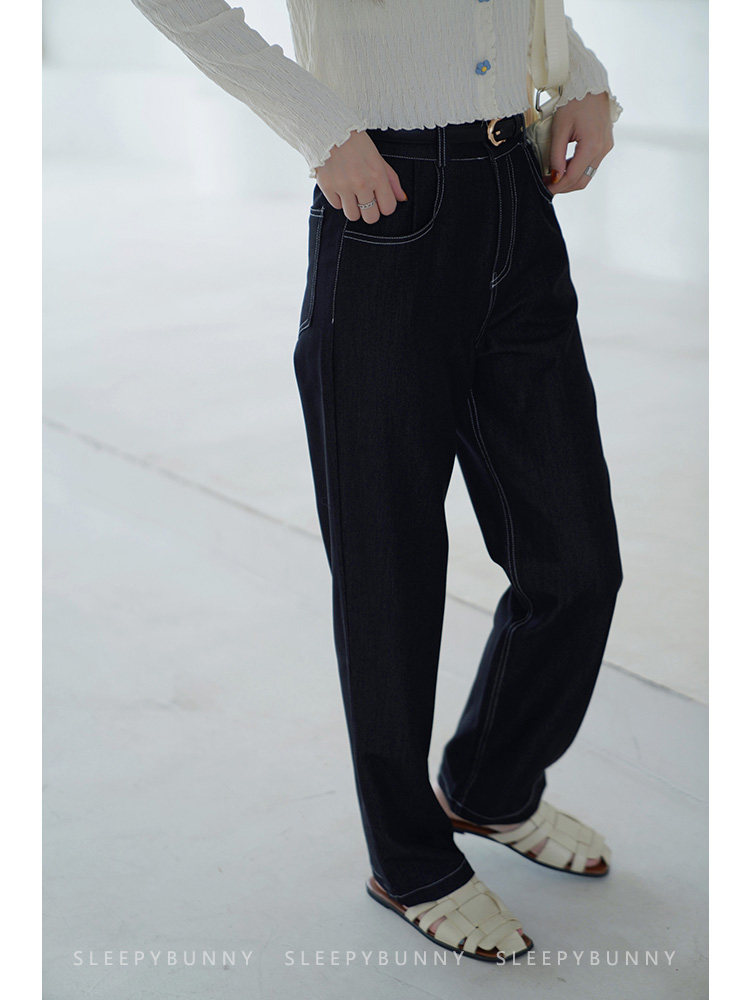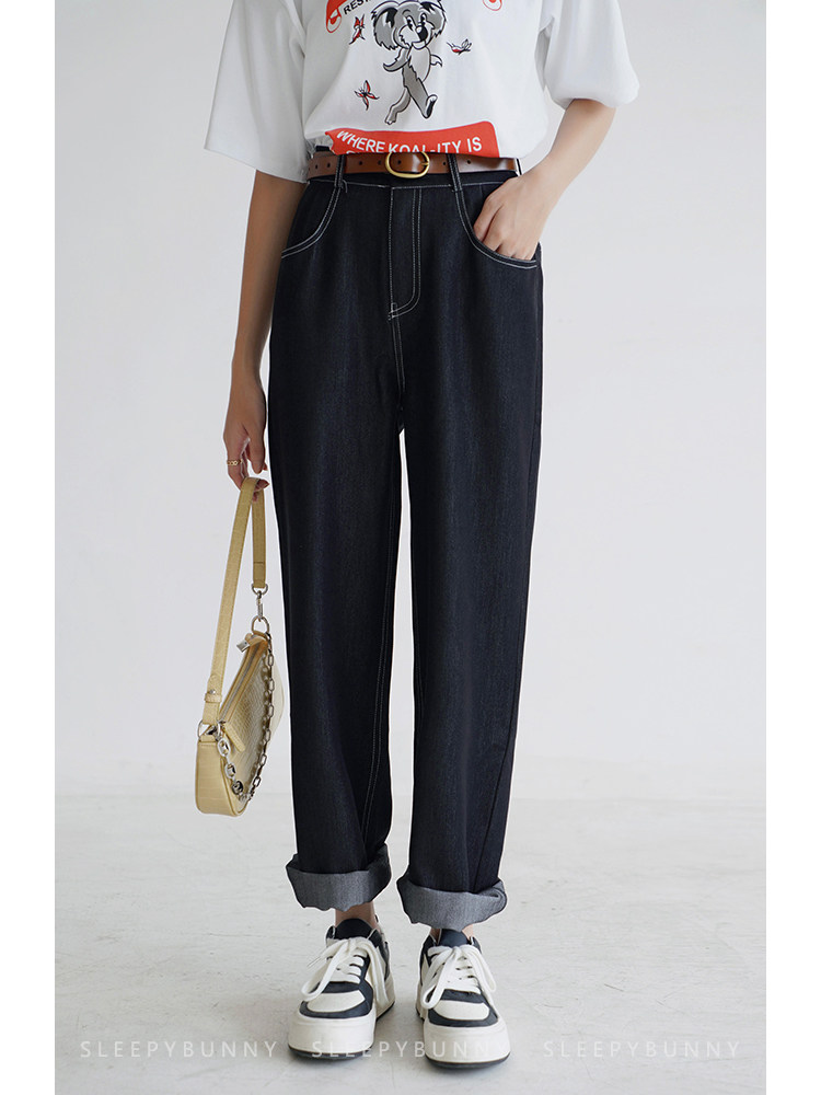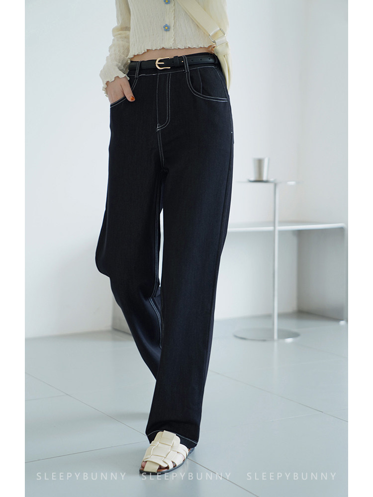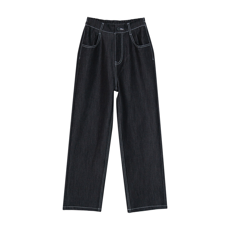 Sleepy Rabbit Elastic Waist Jeans Women 2022 Spring and Autumn New Slim Drape Black Wide Leg Pants Straight Trousers