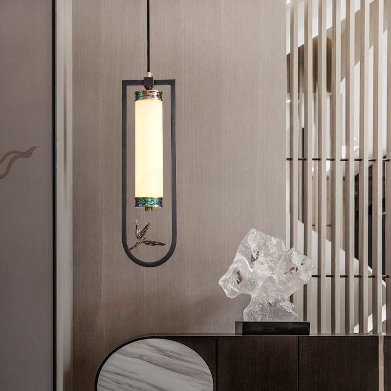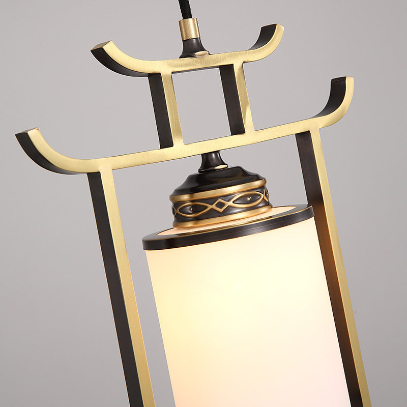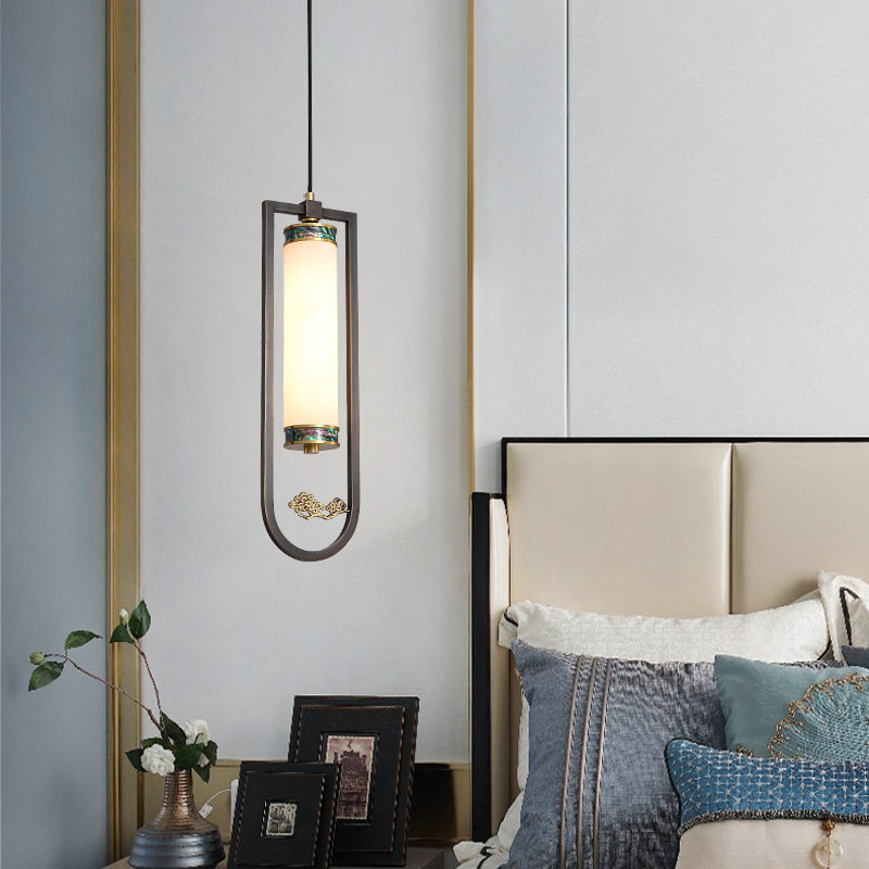 New Chinese all-bronze single hanging lamp Bedroom bed head lamp Zen of modern China Wind gangway Xuanguan Book room Cloud stone chandelia