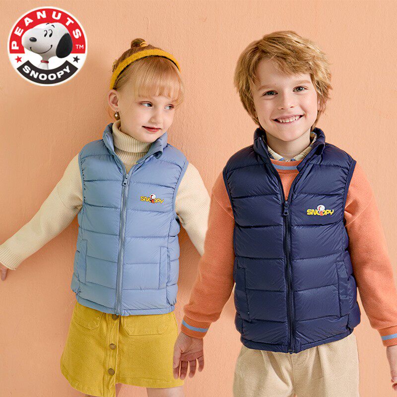 Snoopy children's down vest outer wear warm inner bladder boys and girls light white duck down baby vest autumn and winter