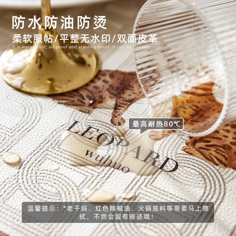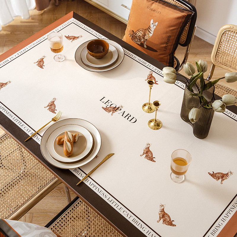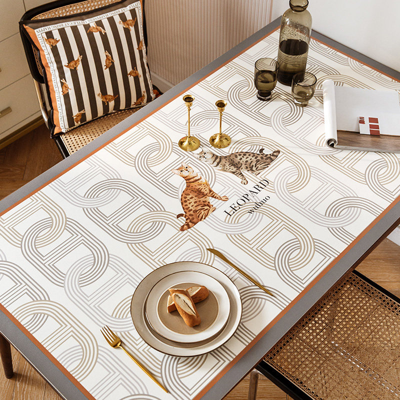 Bengali American Retroit Light Luxury Cat Leather Table Pad PVC Table Cloth Waterproof Oil and Prevention
