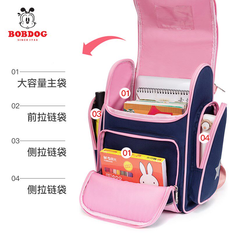 Babu bean girl's school bag Primary school students one 23 to six grade girls ultra-light protection and loss of children after child