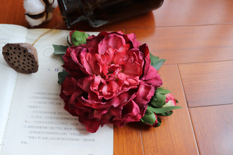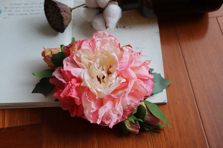 Pink Charred Side Peony Flowers Hair Clip Rose Pink Charred Side Peony Flowers Hair Clip White Charred Side Peony Flowers Hair Clip Purple Red Charred Side Peony Flowers Hair Clip Large Red Charred Side Peony Flowers Hair Clip Orange Yellow Jiao Border Peony Flowers