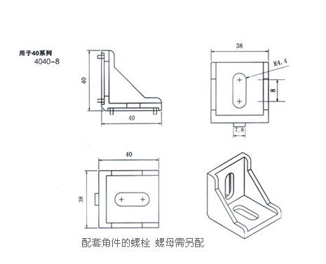 Aluminium extrusion type material right angle 4040 3030 right angle