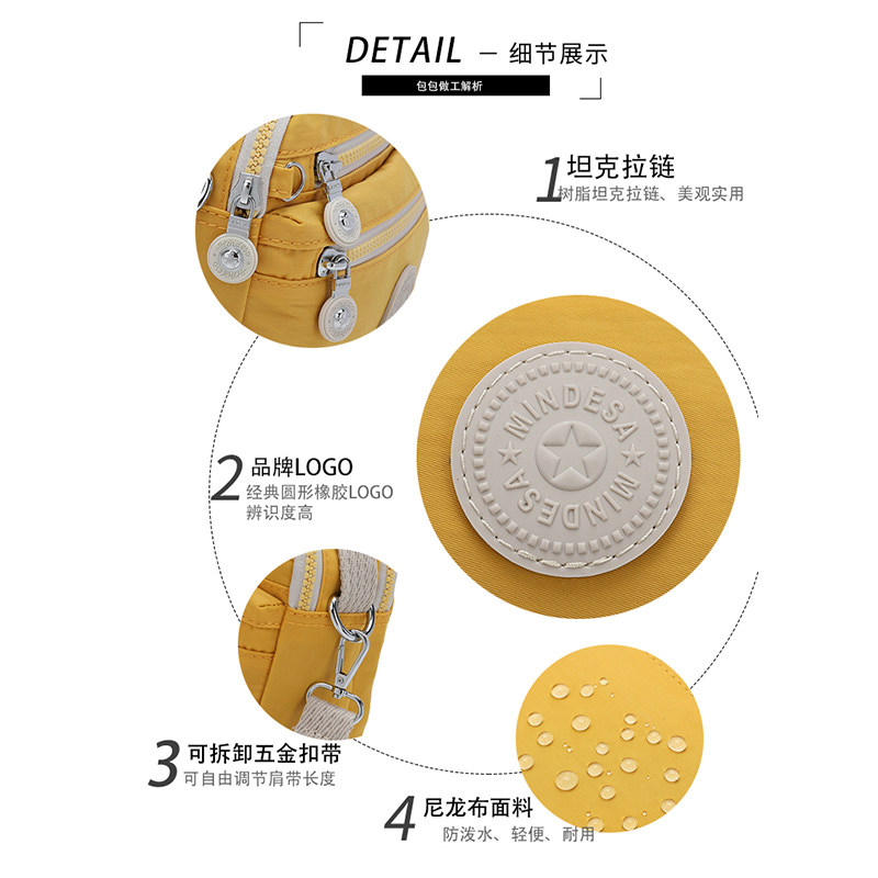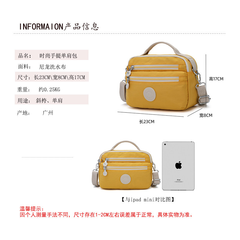 Crossbody bag women's 2022 new fashion handbag simple and versatile contrasting color lightweight nylon cloth water-repellent shoulder bag