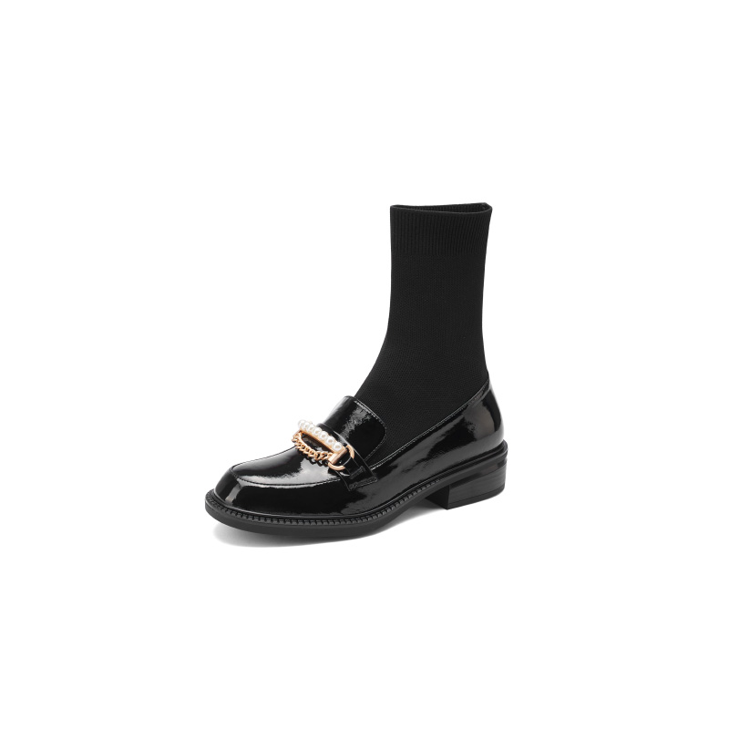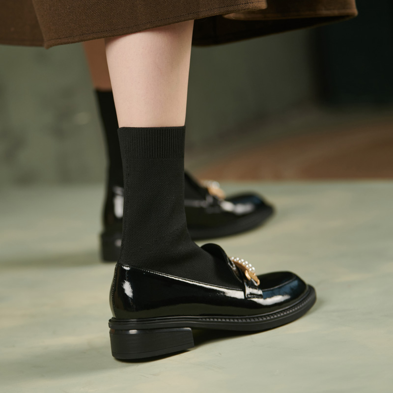 Style Elegant Ocean Qi Pearl Decoration Elastic Socks Shoes Women 2021 New Knit Stretch Short Boots Spring Autumn Single Boots