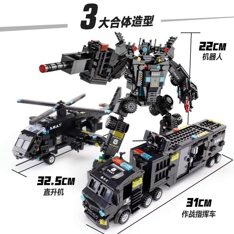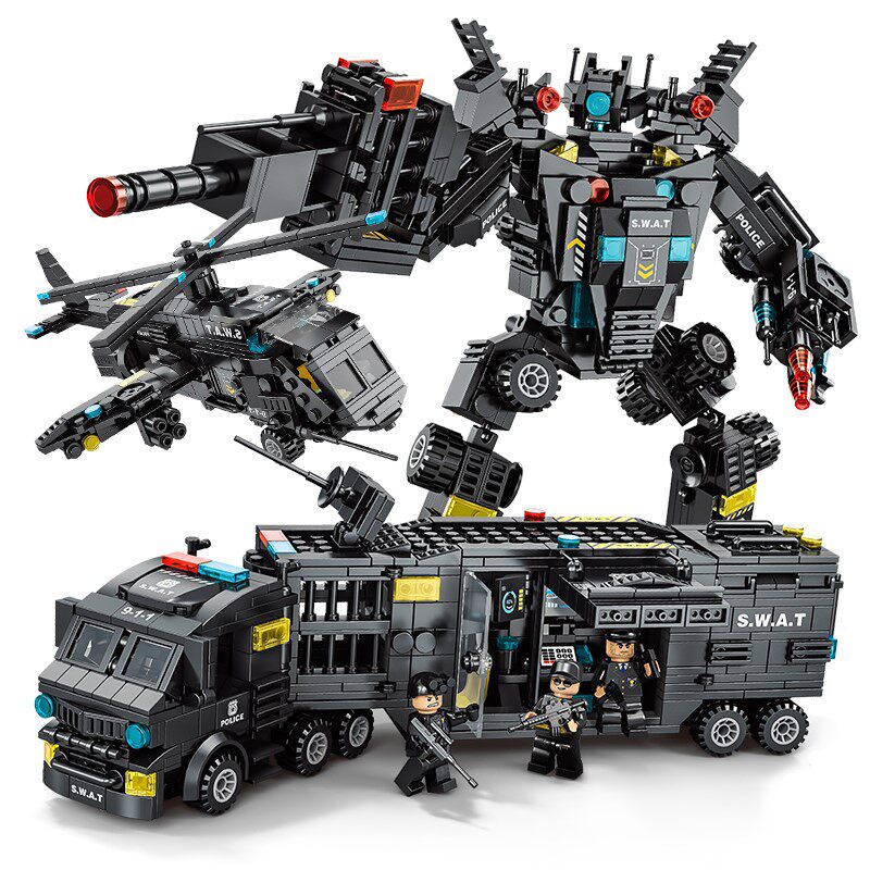 Lego Building Blocks Boy Puzzle Assembly Car Toy Children Small Grain Deformation Robot Diamond Police Jigsaw Puzzle