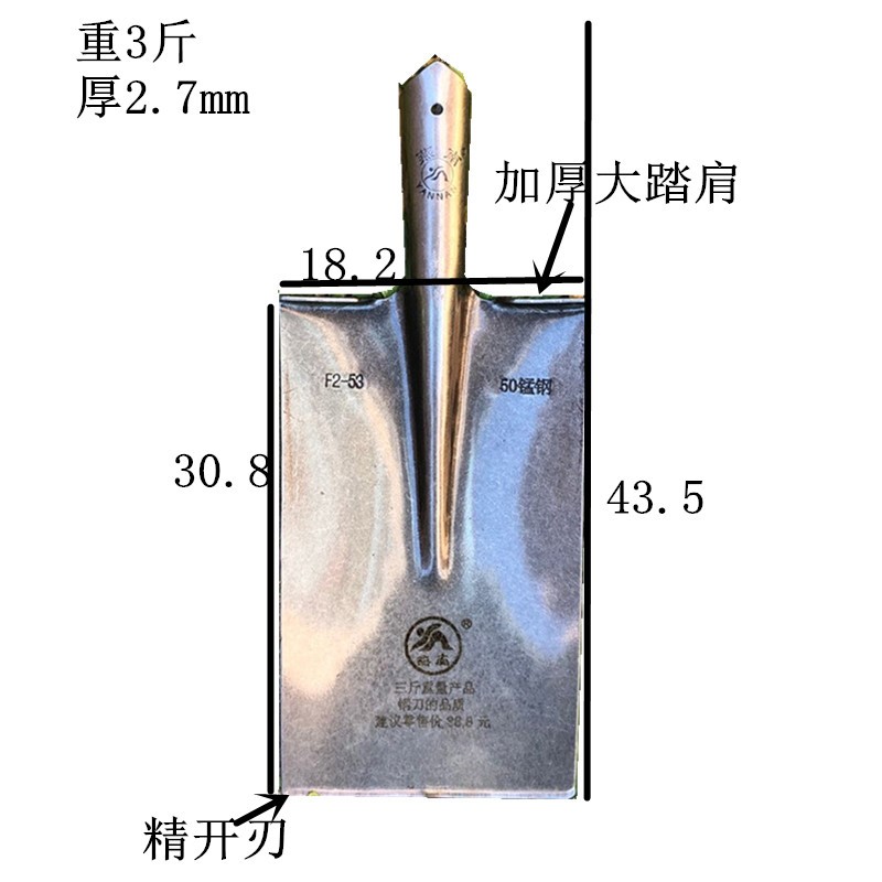 Steel shovel full steel high carbon steel thickened flat head turnod high carbon manganese steel agricultural landscaped iron and earth tree-planting tree outdoor