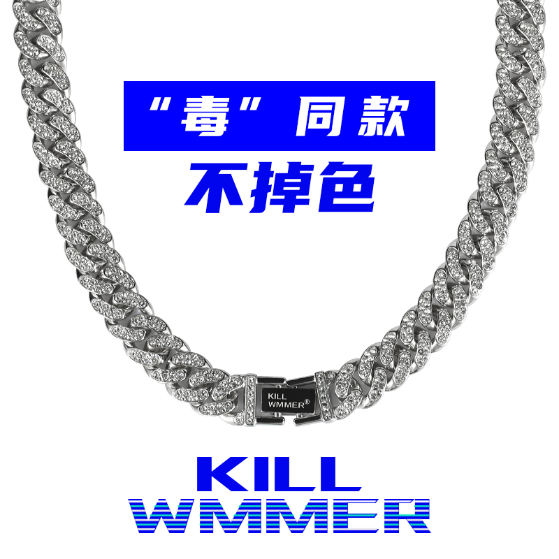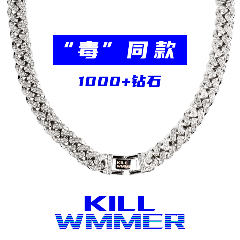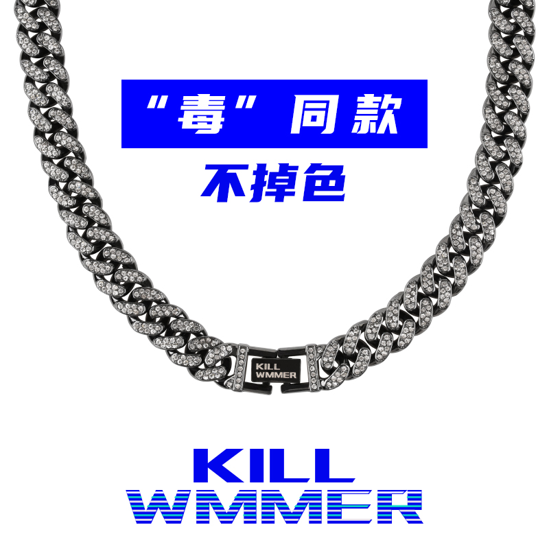 Drilling Cuban necklace male hip hop American man necklace male tide Cuban chain boy Wang Jiar same titanium steel