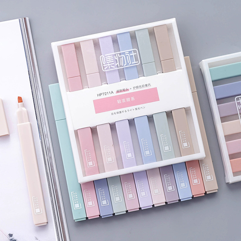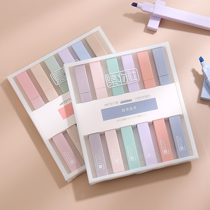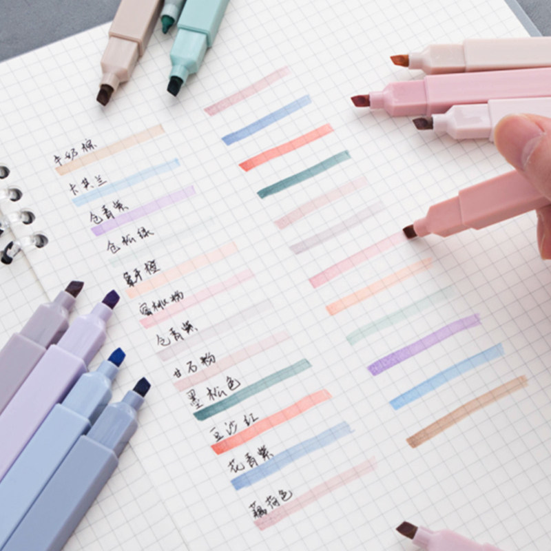 Collection Society Morandi color hand account highlighter 12 packs of students use stick marker pen fluorescent color color pen to take notes special marker pen eye protection double-headed account pen multicolor set