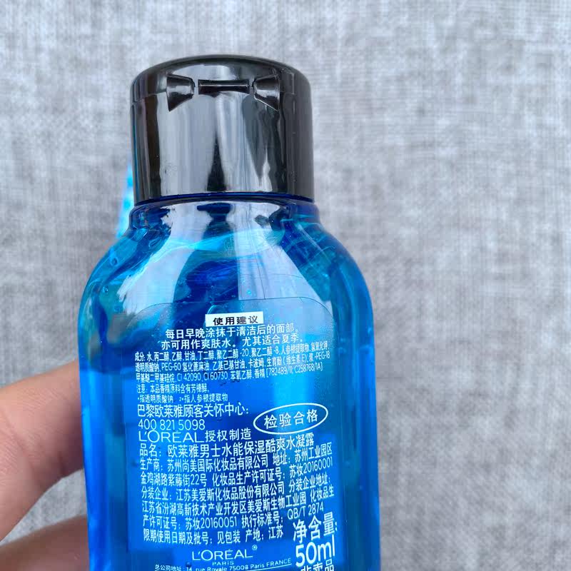 Paris Laiya men's water energy moisturizing cool water gel 50ml toner reduces water loss and instantly moisturizes