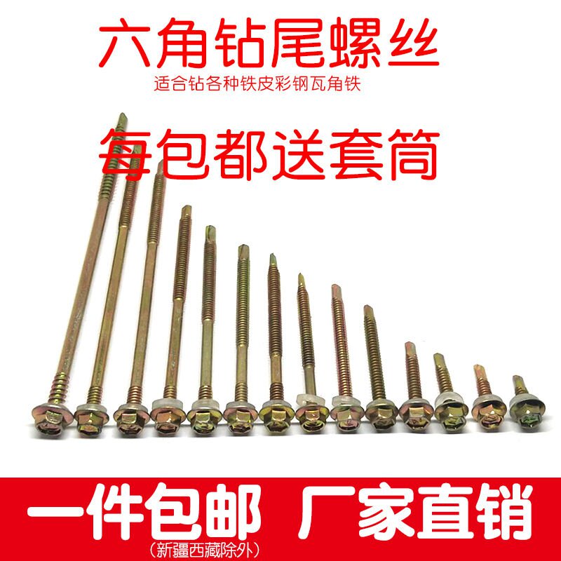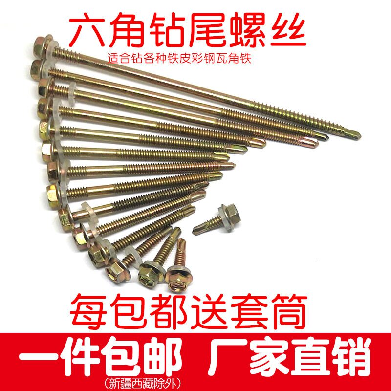 (Send Sleeve) Outer Hexagon Drilling Tail Screw Color Steel Tile Dovetail Screw Self-tapping Self-drilling Iron Sheet Steel M5