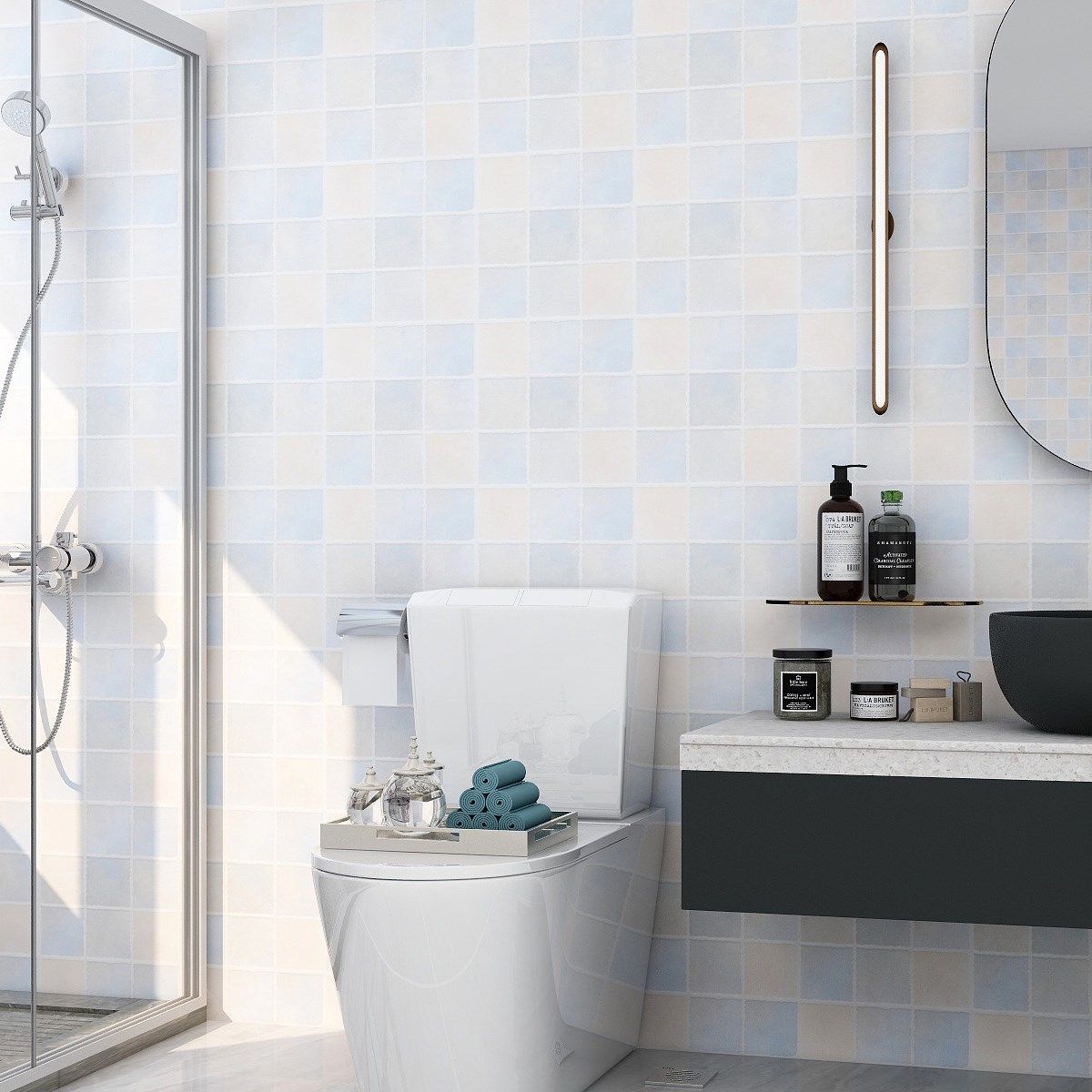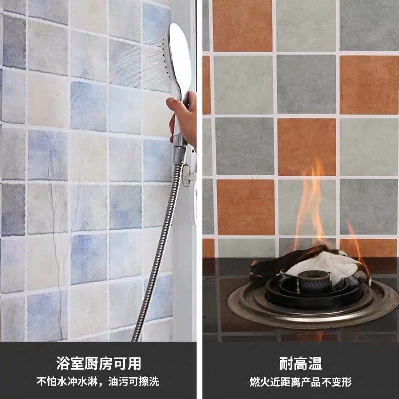 Powder room waterproof stickers self-adhesive thickened bathroom moisture-proof wall stickers kitchen oil-proof wallpaper balcony toilet tile stickers