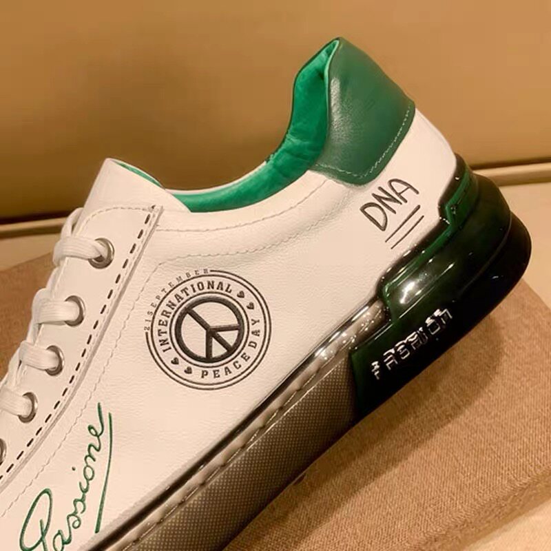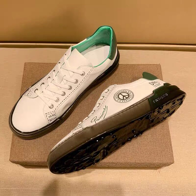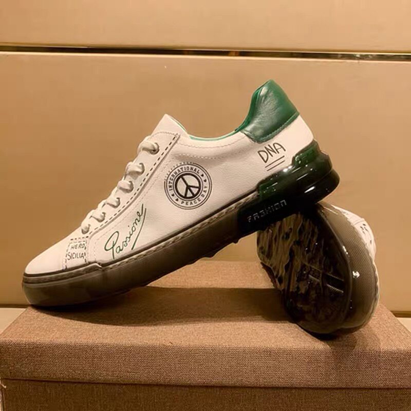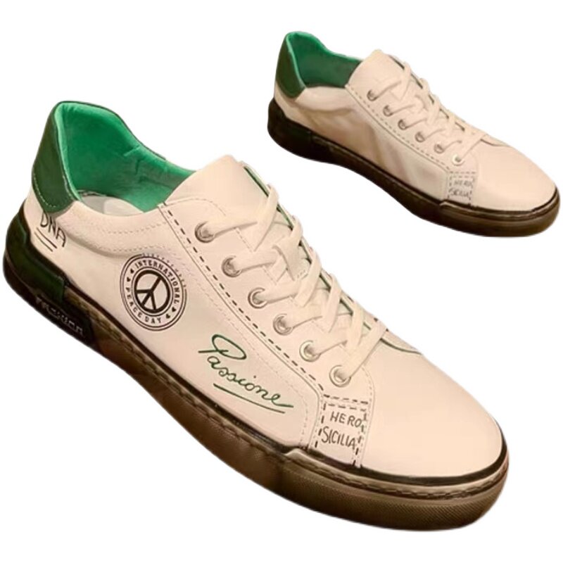 European Station Men's Shoes 3D Printed Small White Shoes 2022 Autumn Winter New Genuine Leather Breathable 100 Hitch White Board Shoes Men