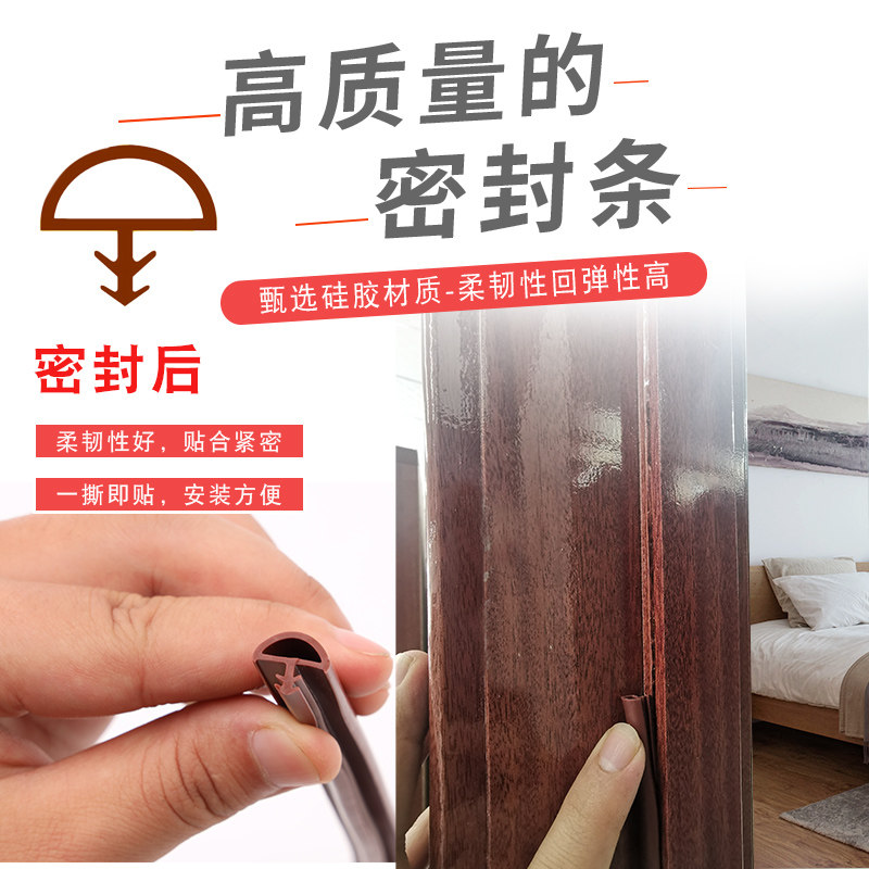 Wooden door card slot sealing sound insulation strip door frame anti-collision dust-proof leather strip indoor shock-absorbing sound-absorbing anti-aging sealing strip