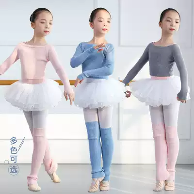 Children's dance sweater one-collar girl ballet suit gymnastics clothing autumn and winter gray long sleeve sling two-piece set