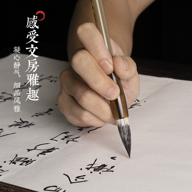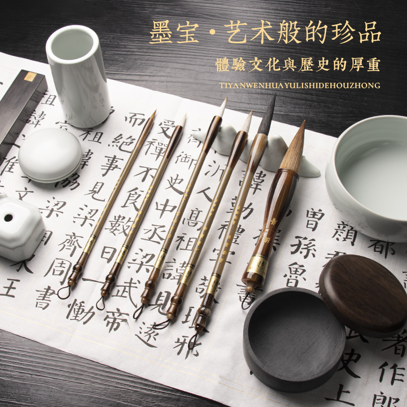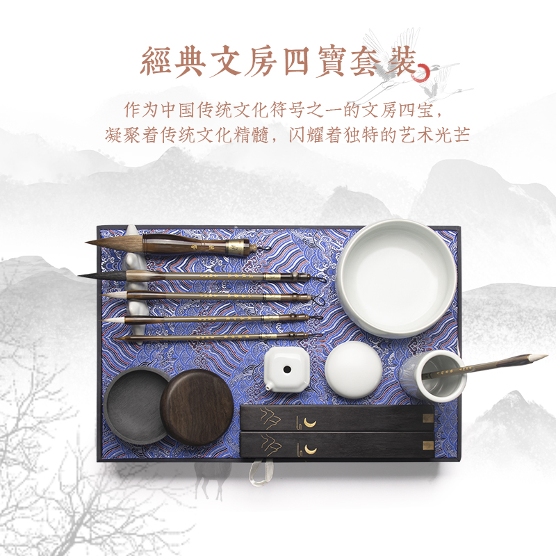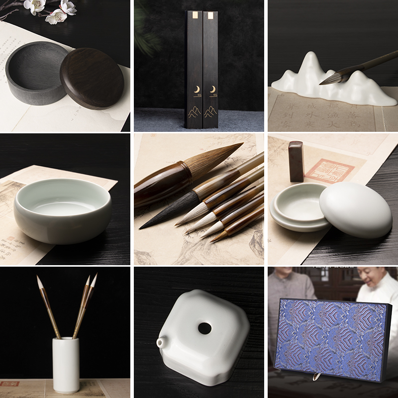 Semi-ancient Thatched Cottage Study Four Treasures Set Calligraphy Beginners Primer Shanlian Lake Pen Set Celadon Boutique Professional Grade Pen Ink Paper Inkstone Tools Supplies High-end Brush Set Beginner