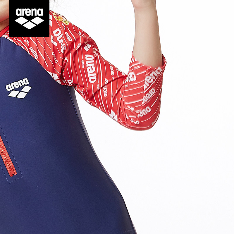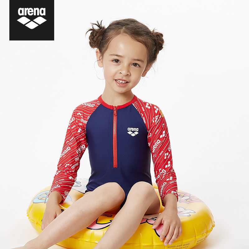 arena arena girl's one-piece triangle long-sleeved sunscreen swimsuit cute print comfortable Children's swimsuit