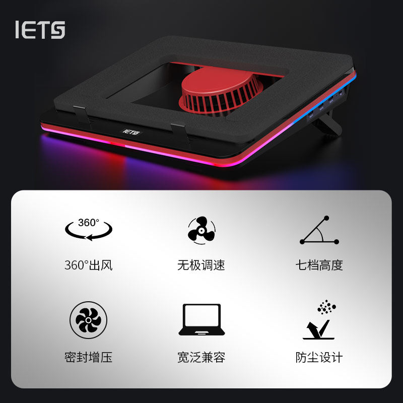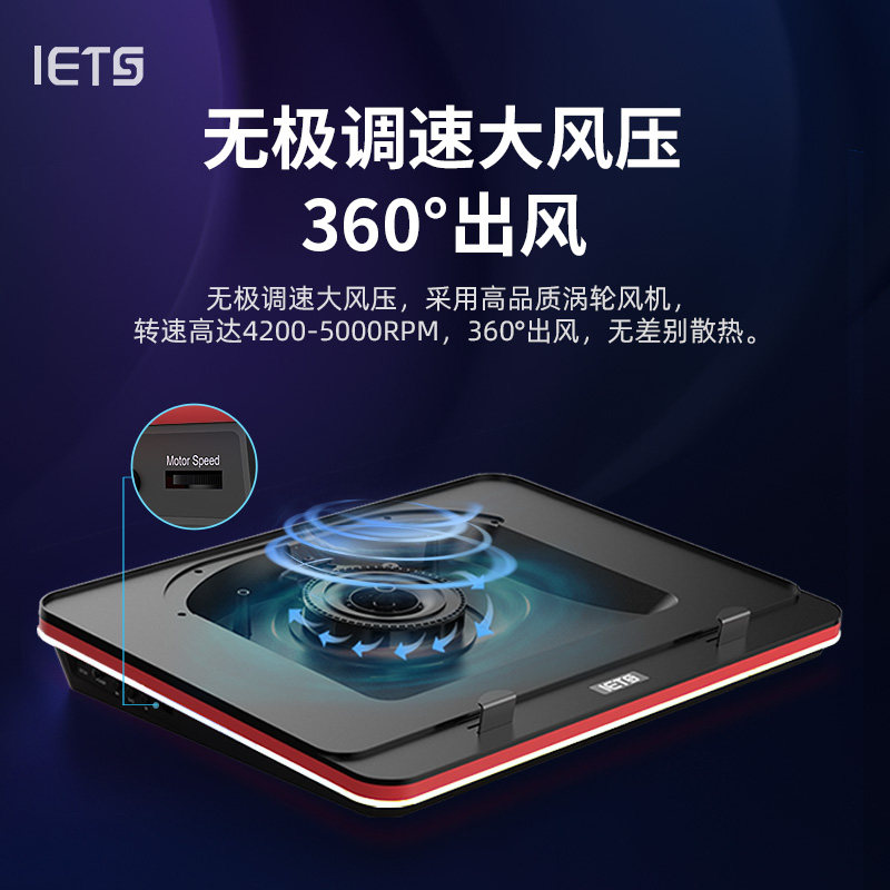 IETS GT500 laptop compressed air radiator base gaming laptop cooling bracket dustproof water cooling air cooling support 24W adapter 18-inch turbo wind pressure radiator
