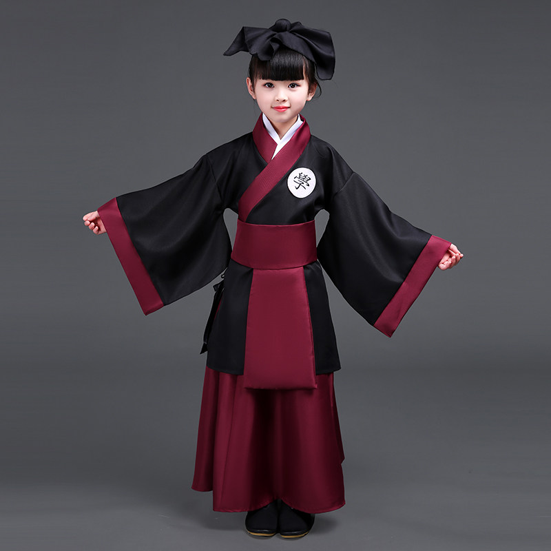 Black Red Children Han-clothed Antique Student Student Schedule Book-Book Three-Words Costume for State School Kindergarten