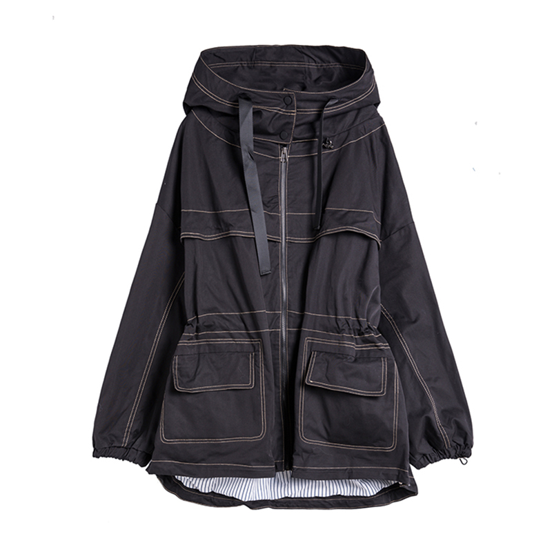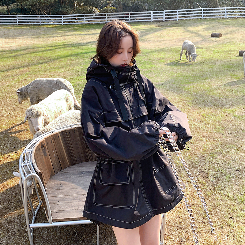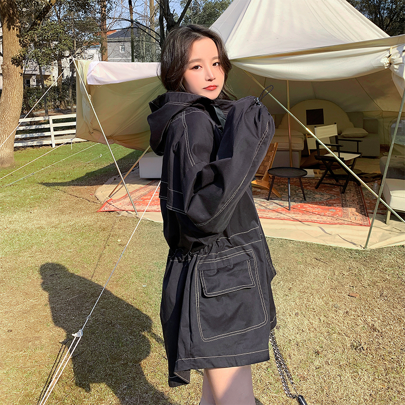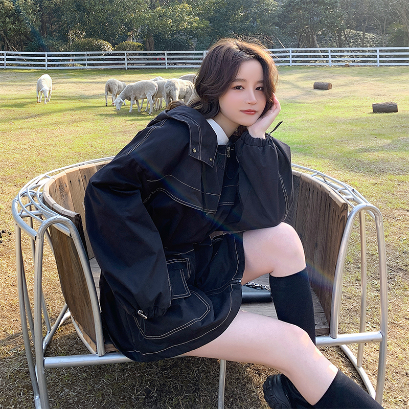 South Korea Small Subnets Red Overalls Jacket Woman Autumn Loose Collection Waist Display Slim Chic Medium Long Version Harbor Wind Blouse