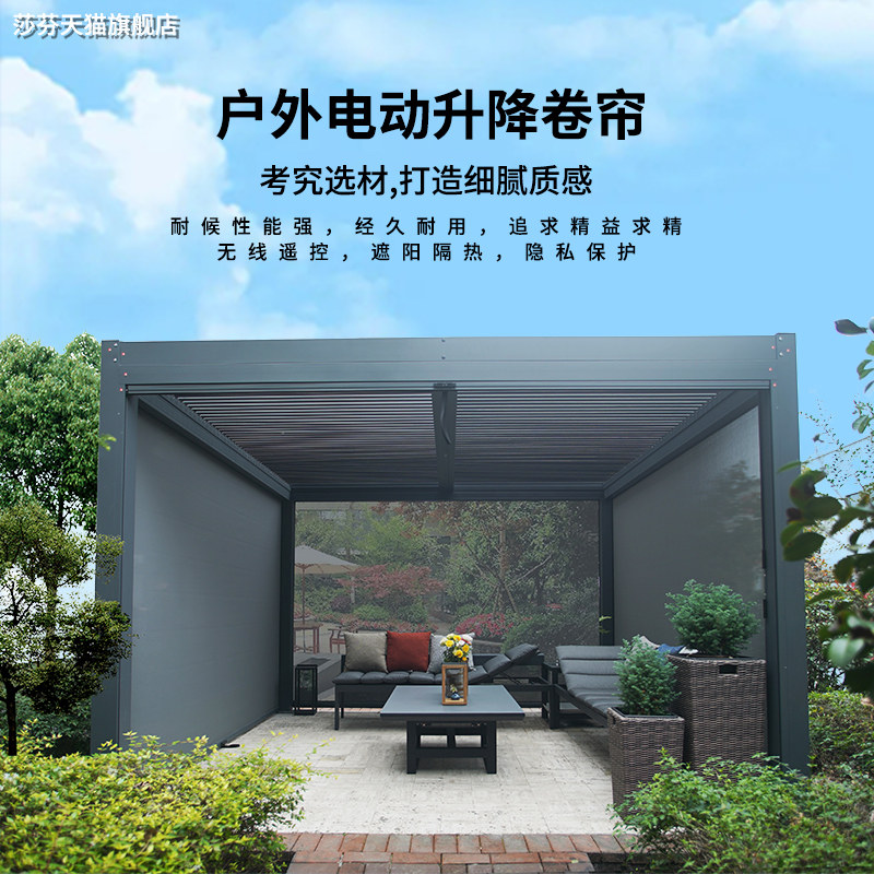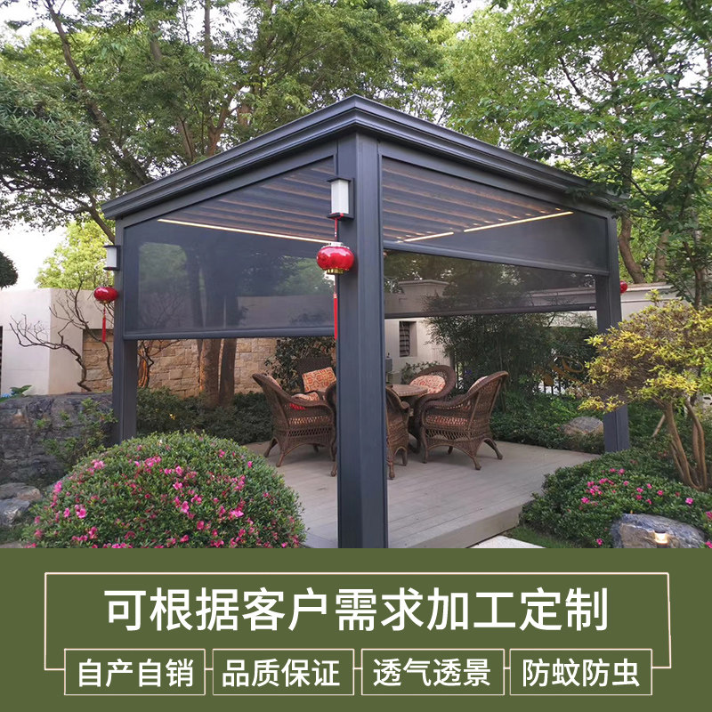 Outdoor pavilion sunshade windproof rain sun mosquito electric roller curtain greenhouse courtyard villa outdoor lifting curtain