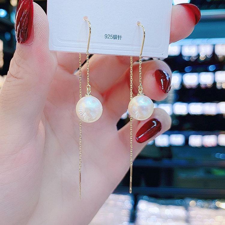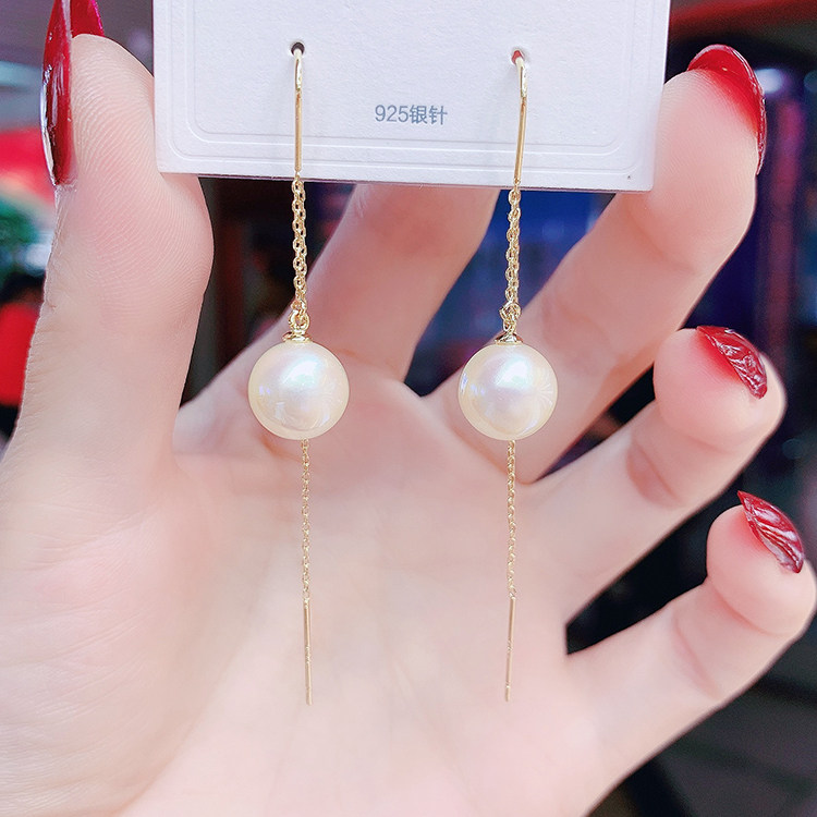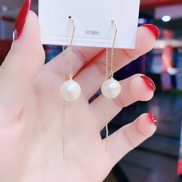 Fashion medium long version of pearl earrings female minimalist temperament 100 hitch version of the Korean version of the earrings senior sensation earrings with a thin face