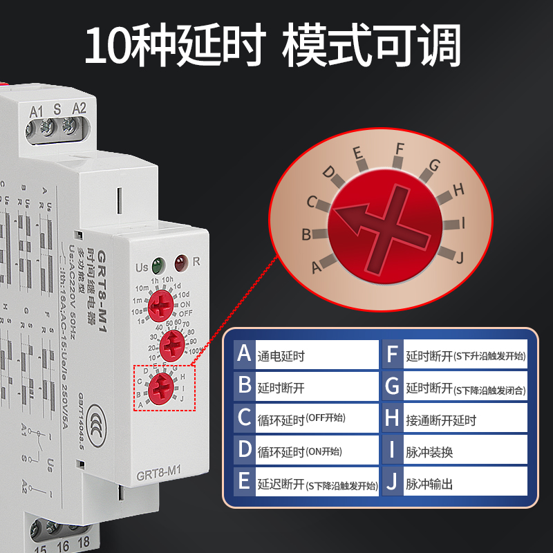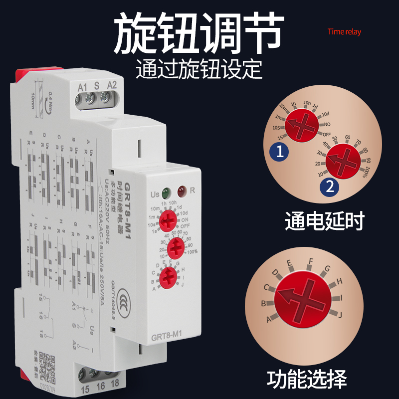 Timelapse relay GRT8-M multifunction small adjustable AC/DC 220V24v12v time-lapse switch controller