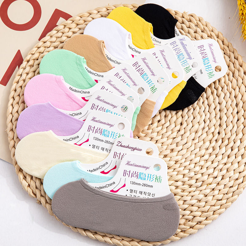 (5-20 pairs) socks women's invisible socks shallow mouth Korean version cute silicone non-slip ultra-thin deodorant magic invisible socks summer