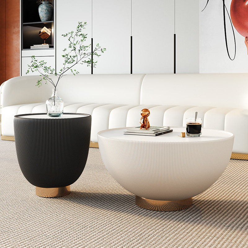 Italian light luxury creative coffee table modern minimalist style round slate small apartment living room Hong Kong style designer furniture