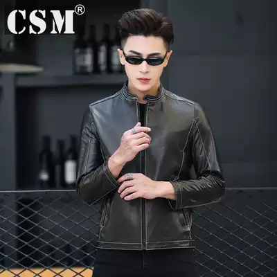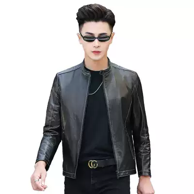 Haining New 2021 men's leather leather leather leather jacket Short Line locomotive slim Korean tide