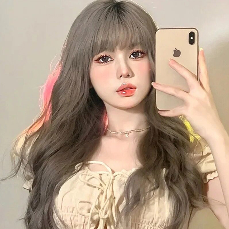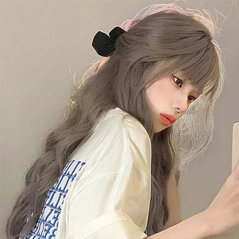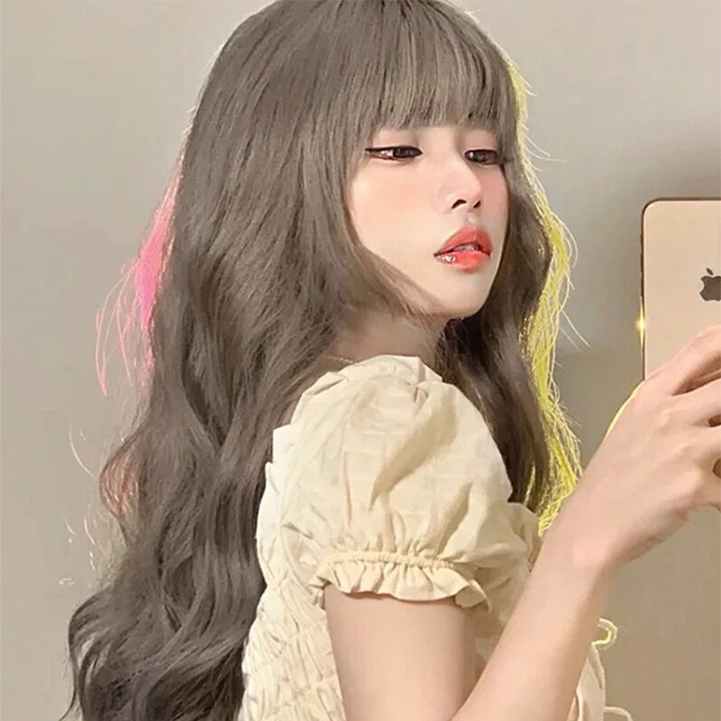 Wig female summer hair natural full headgear air bangs long curly hair big wave modeling simulation temperament wig cover